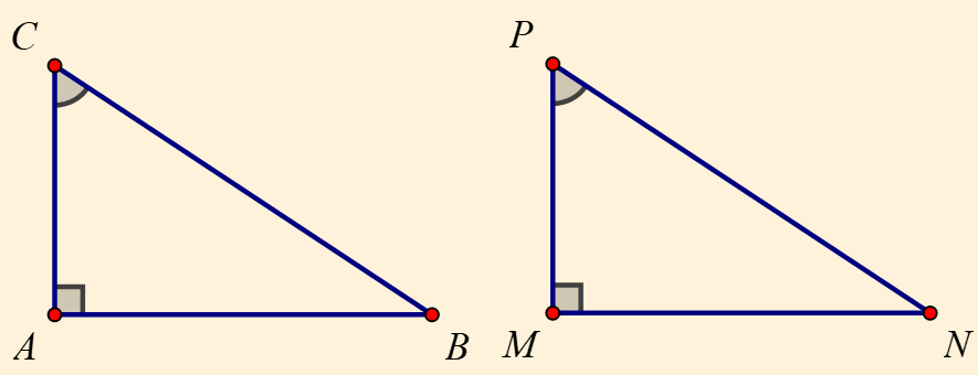 Vậy để `△ABC=△MNP` theo trường hợp cạnh góc vuông - góc nhọn thì cần thêm điều kiện:
