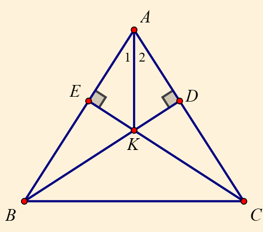 `=> △AEK=△ADK` (cạnh huyền – cạnh góc vuông)