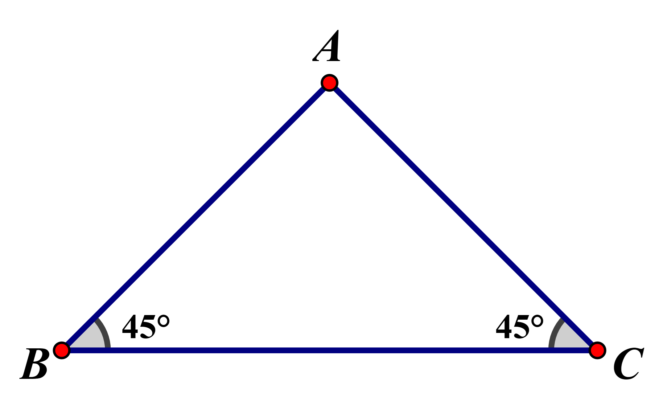 Tam giác `ABC` có `\hat(B)=\hat(C)=45^o`. Khi đó tam giác `ABC` là tam giác gì?