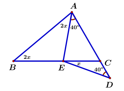 `=>\hat(AEC)=2.\hat(EBA)=2.\hat(EAB)=2.2x=4x`