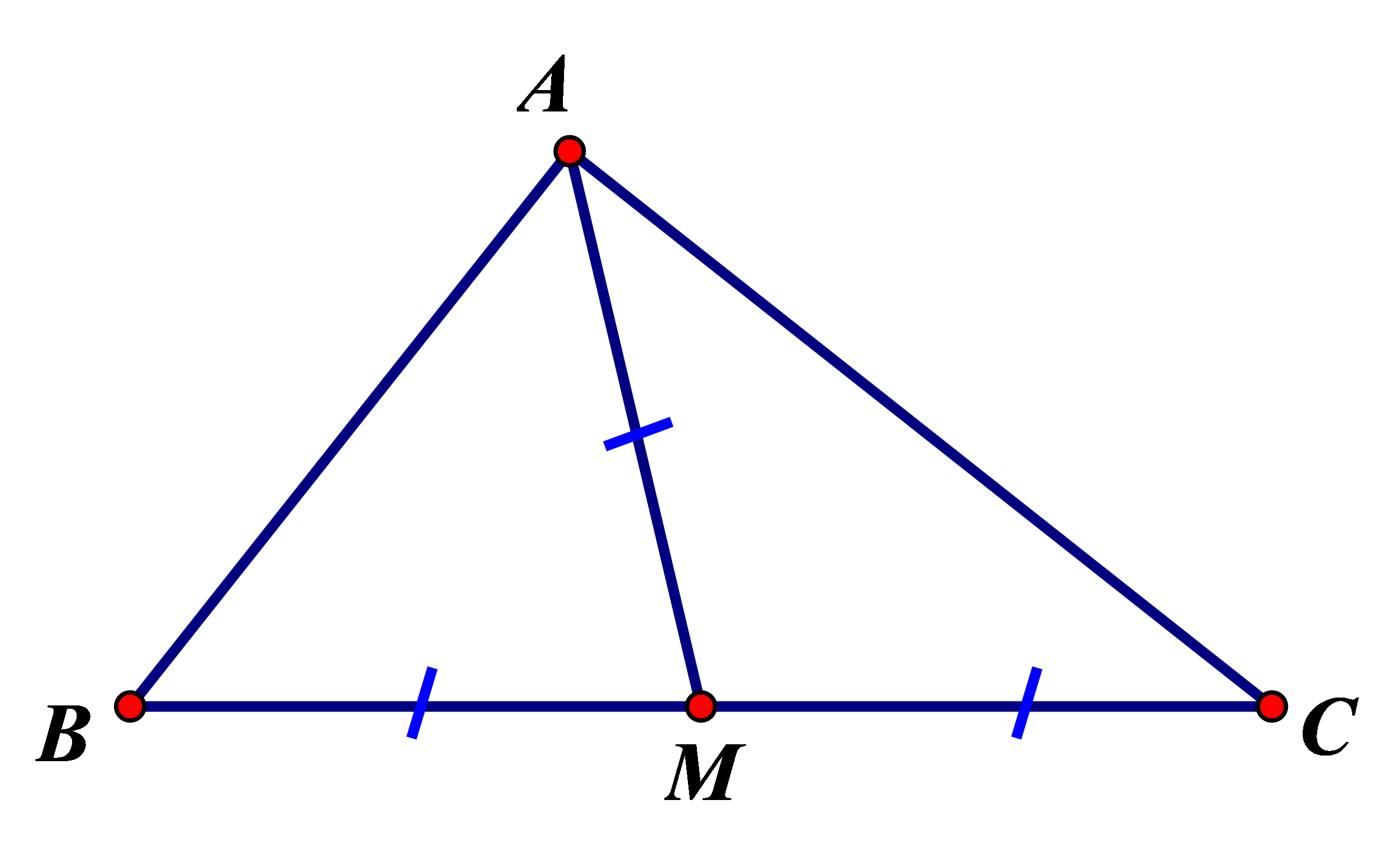 Cho tam giác `ABC` có `M` là trung điểm của `BC`. Biết `AM=(BC)/2`. Khi đó ta có tam giác `ABC` là: