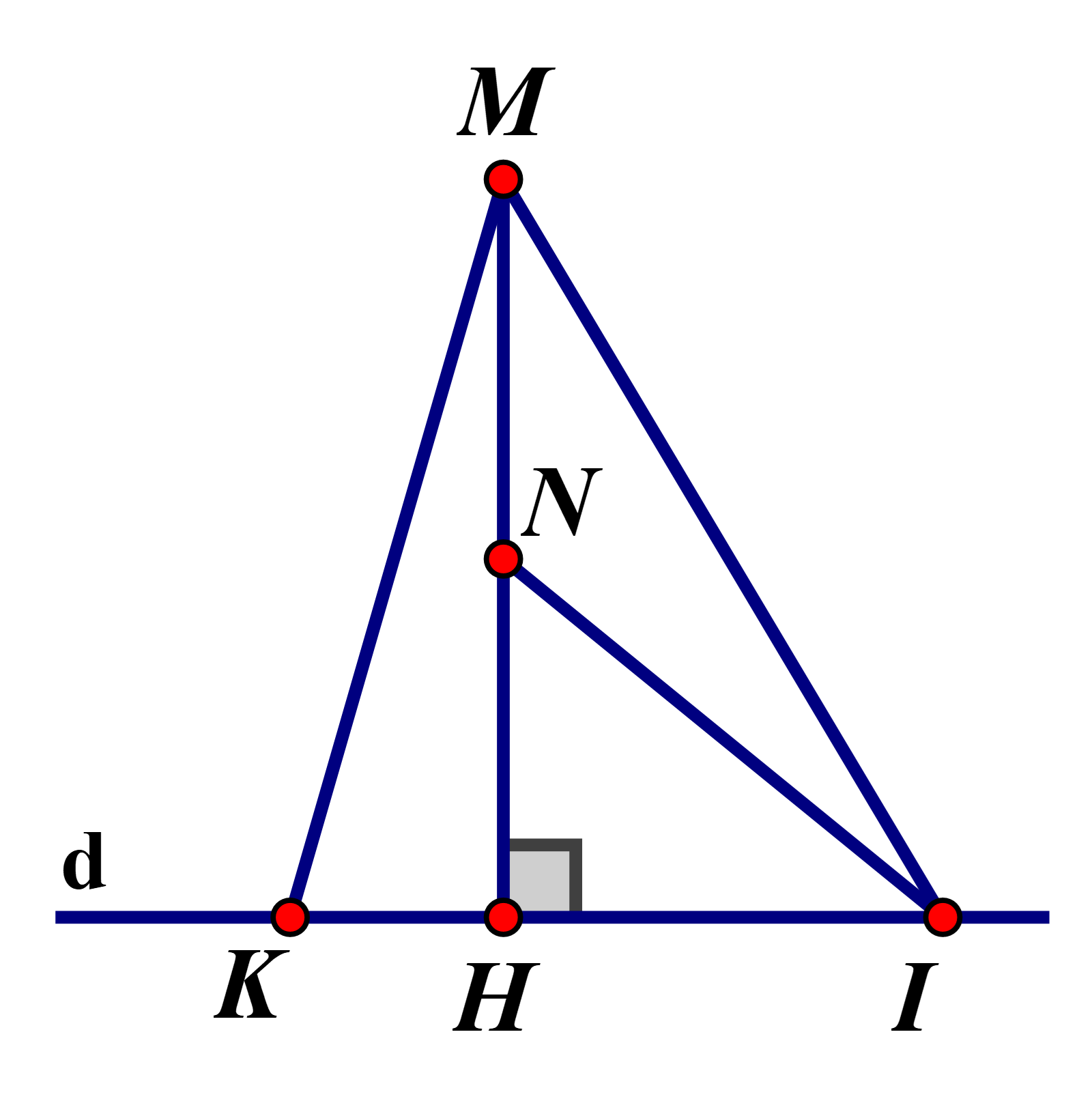 `MI` và `NI` có hình chiếu trên `d` là `KH`
