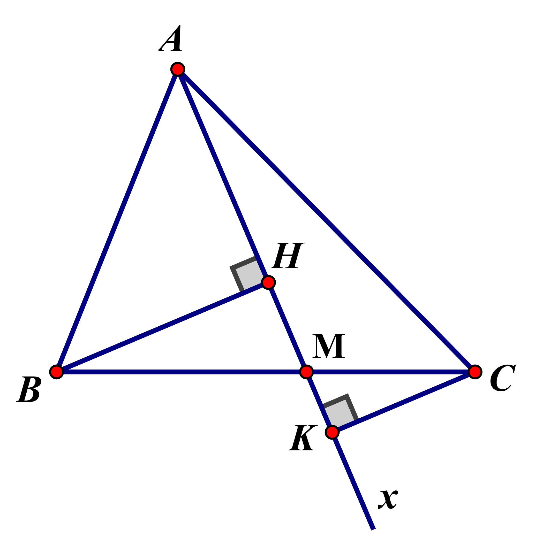 Biết `triangleABC` có `\hat(B)` và `\hat(C)` nhọn. Gọi `H` và `K` lần lượt là hình chiếu của `B` và `C` trên `Ax`. Điều kiện để tổng `BH+CK` lớn nhất là: