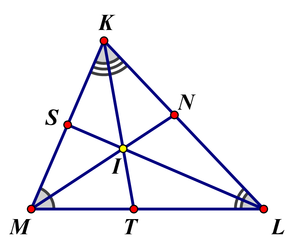 Ba đường phân giác của một tam giác cùng đi qua một điểm. Điểm này cách đều ba cạnh của tam giác đó.