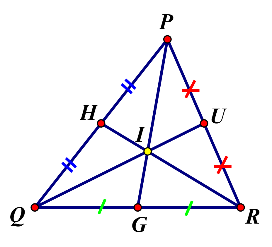 Điểm `I` gọi là trọng tâm `triangleABC`