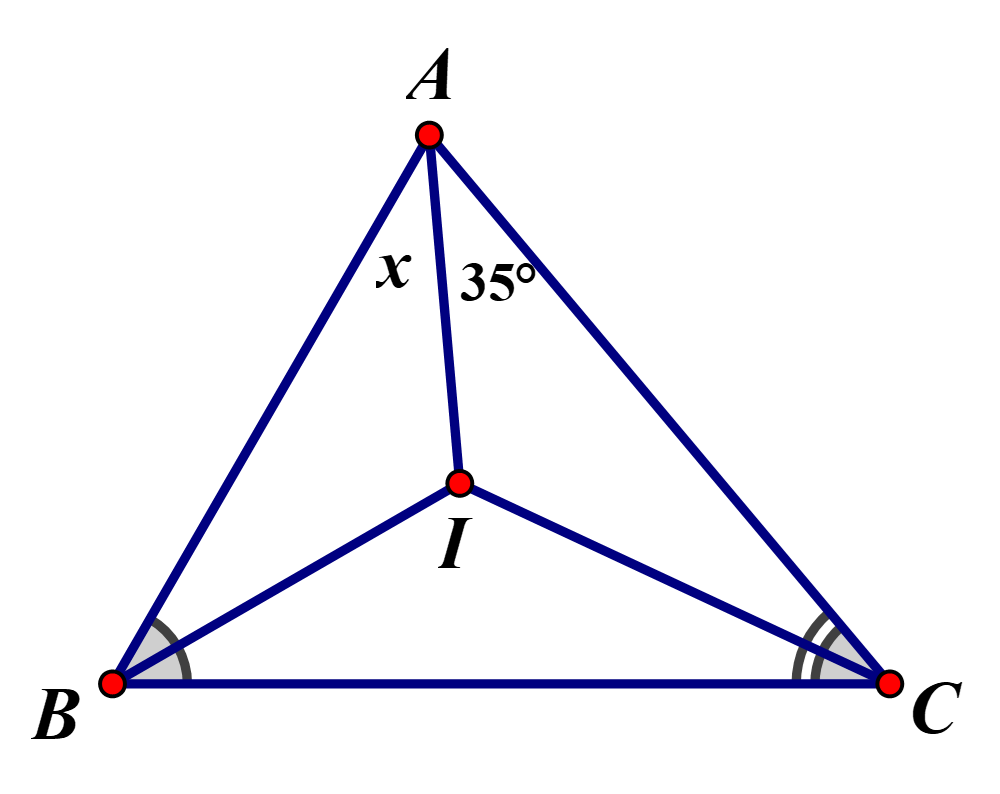 Bước 2: Từ `\hat(B);\hat(C)` chỉ ra số đo các góc `\hat(IBC);\hat(ICB)`