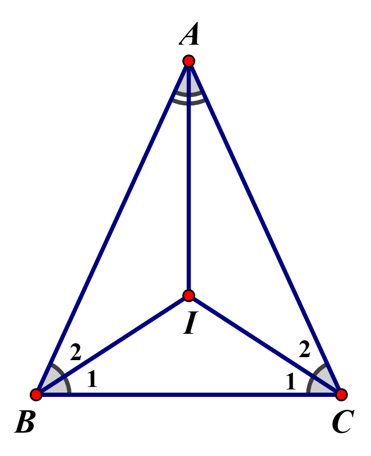 Bước 2: Từ `\hat(IBC)+\hat(ICB)`, sử dụng tính chất của tia phân giác suy ra `\hat(B)+\hat(C)`