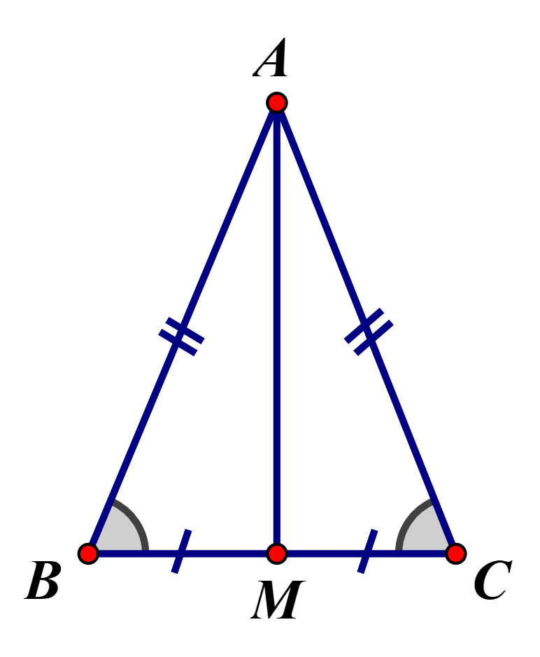 “Nếu tam giác `ABC` cân tại `A` có `AM` là đường trung tuyến thì `AM` cũng là đường phân giác của tam giác `ABC`”