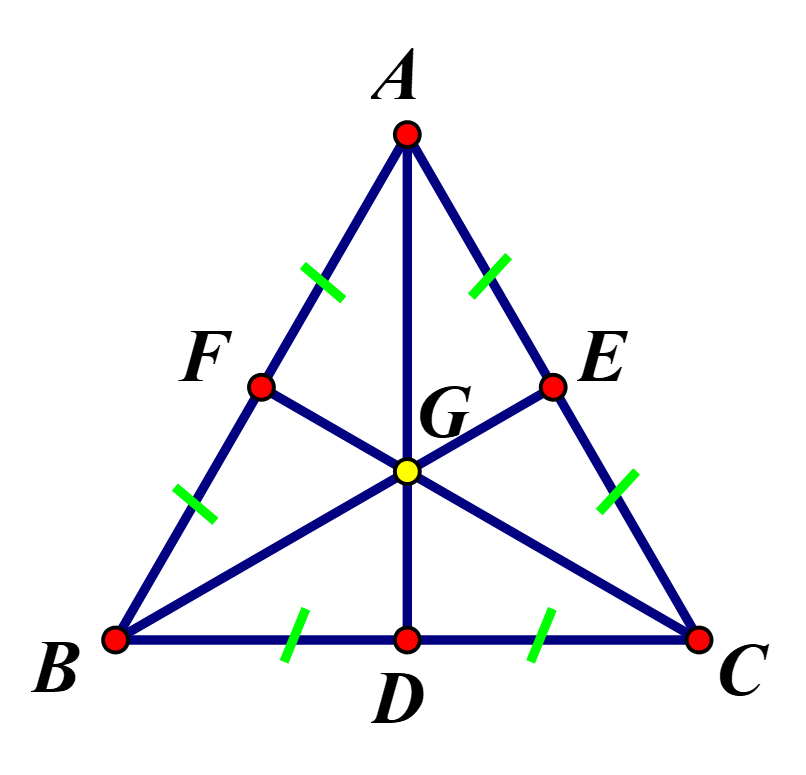 `=>` Điểm `G` cách đều ba cạnh của `triangleABC`