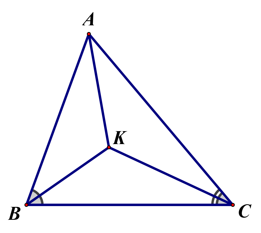 Xét `triangleKBC` có: `\hat(BKC)+\hat(KBC)+hat(KCB)=180^o` (Định lí tổng các góc trong tam giác)