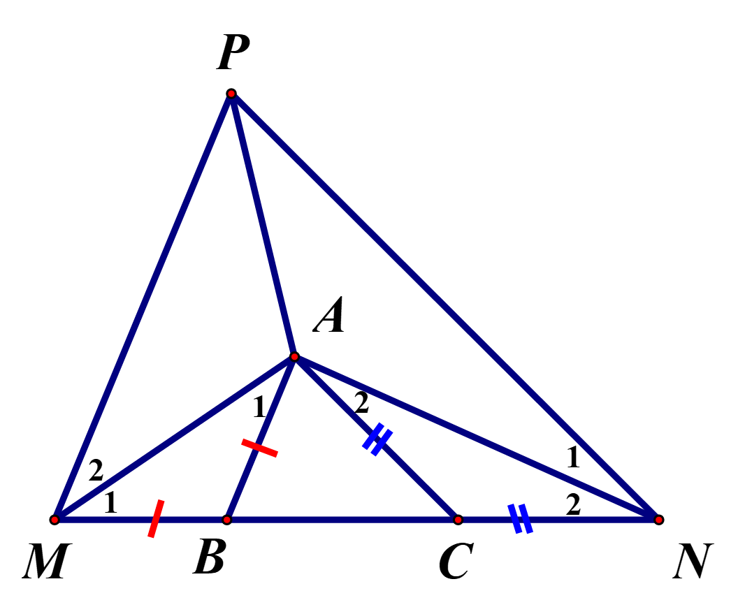 Theo tính chất tia phân giác, ta có: `hat(N_1)=hat(N_2); hat(P_1)=hat(P_2)`