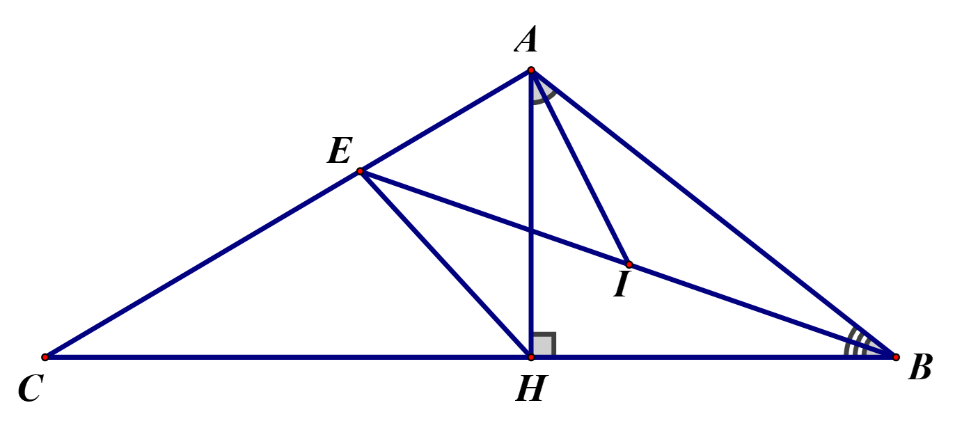 Cho `triangleABC` có `AH bot BC` tại `H` và `hat(BAH)=2.hat(C)`. Tia phân giác của góc `B` cắt `AC` ở `E`. Tia phân giác của góc `BAH` cắt `BE` ở `I`.