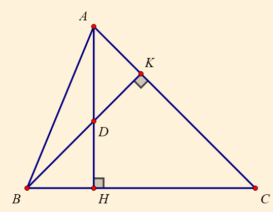 Cho `△ABC` nhọn có hai đường cao `AH` và `BK` cắt nhau tại `D`.