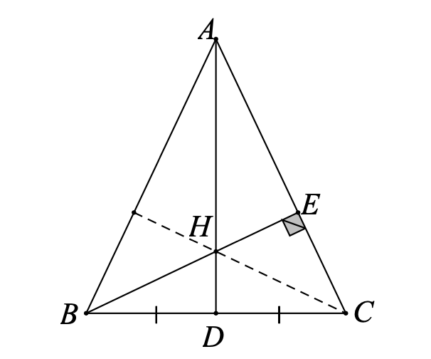 Cho `∆ABC` cân tại `A`, đường cao `BE` cắt đường trung tuyến `AD` ở `H`.