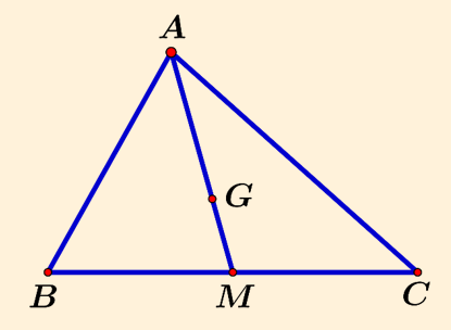 Xét `△ABC` có: `AM` là đường trung tuyến, `G` là trọng tâm của tam giác