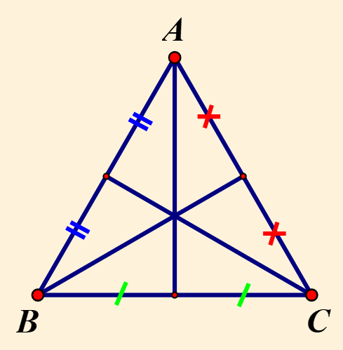 Cho tam giác `ABC`, biết đường trung trực của một cạnh bất kì trong tam giác `ABC` trùng với đường cao xuất phát từ đỉnh đối diện cạnh đó. Cho biết tam giác `ABC` là tam giác gì?