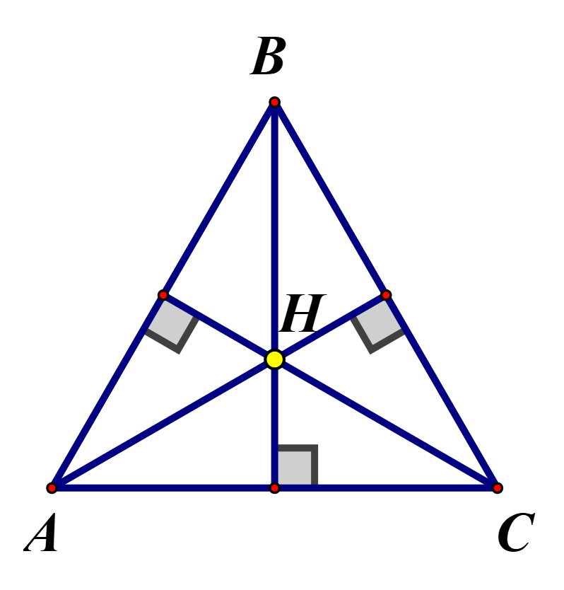 Cho `triangleABC` cân tại `B`, `H` là trực tâm. Để `H` là trọng tâm của tam giác này thì cần thêm điều kiện gì?