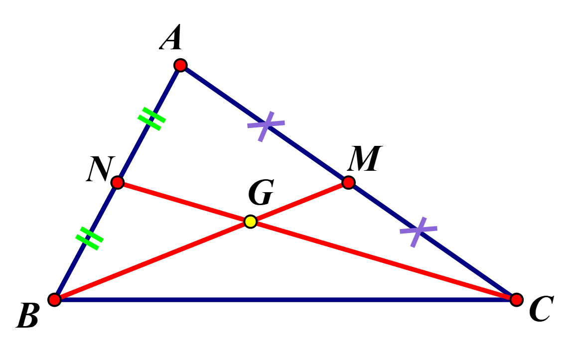 Gọi giao điểm của hai đường trung tuyến `BM` và `CN` là `G`