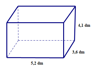 `5,2 xx 3,6 xx 4,1 = 76,752` `(dm^3)`