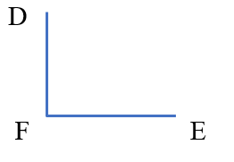 Trong hình là góc vuông đỉnh `F`; cạnh `FD`, `FE`
