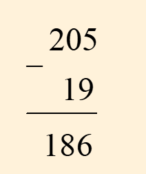 Vậy `205 - 19 = 186`.
