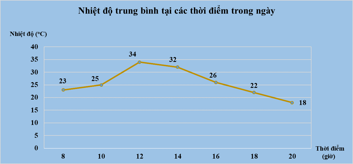 Biểu đồ dưới đây cho biết nhiệt độ tại thủ đô Hà Nội vào một ngày mùa thu Hà Nội