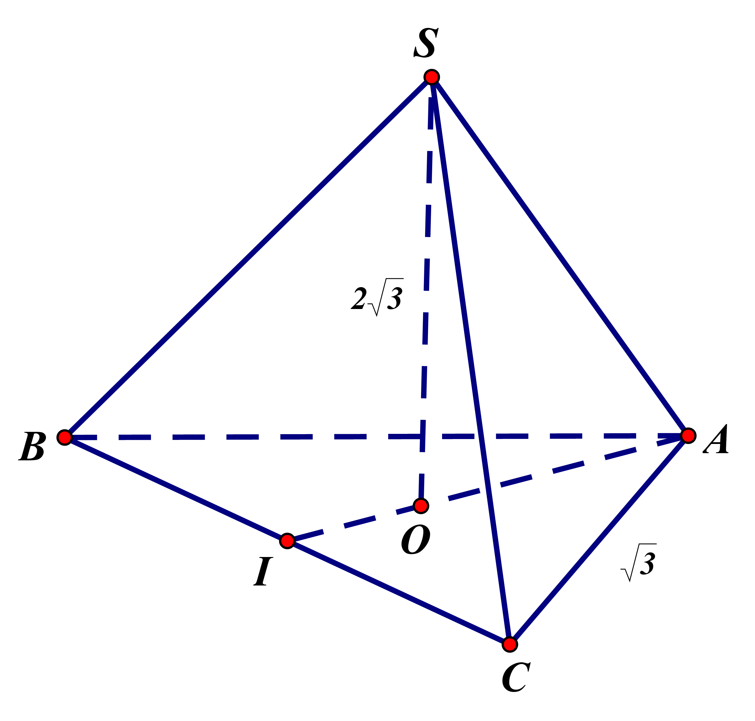 Thể tích hình chóp tam giác đều là `1/3. 2sqrt3.(3sqrt3)/4=3/2`