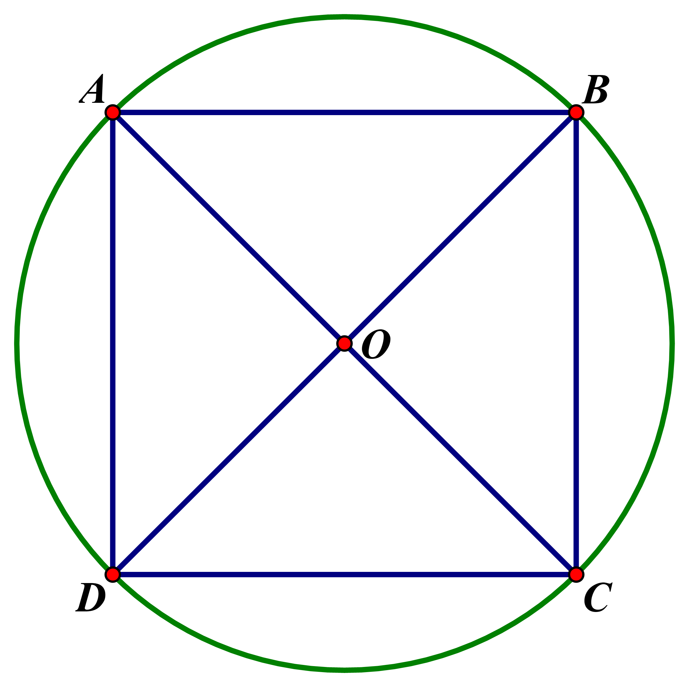 Bán kính đường tròn ngoại tiếp tứ giác đáy `ABCD` là nửa đường chéo