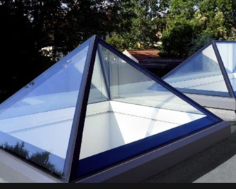 Diện tích kính làm bốn mặt bên của mái che giếng trời chính là diện tích xung quanh của giếng trời đó