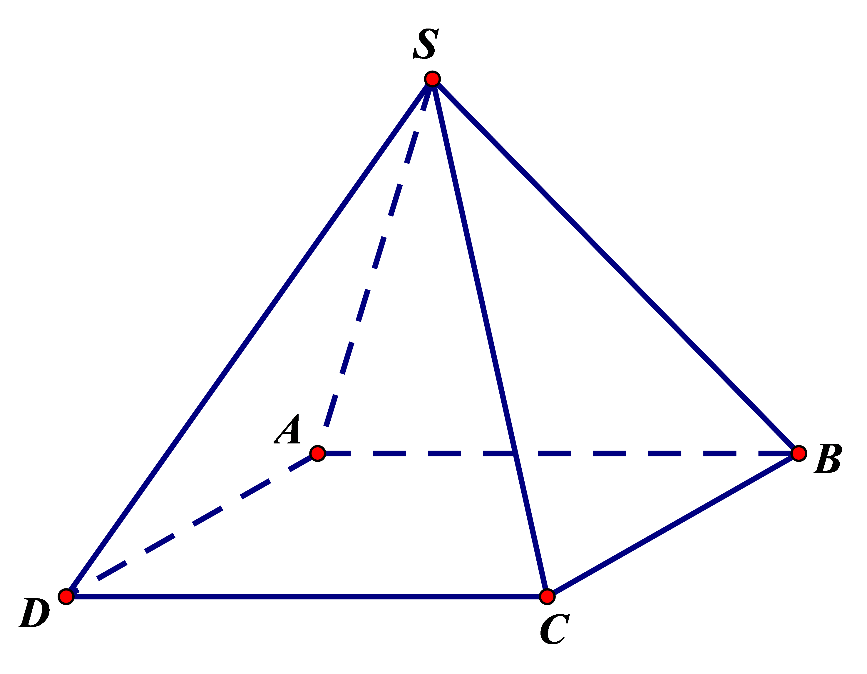 Hình chóp tứ giác đều `S.ABCD` có đáy là hình vuông `ABCD`