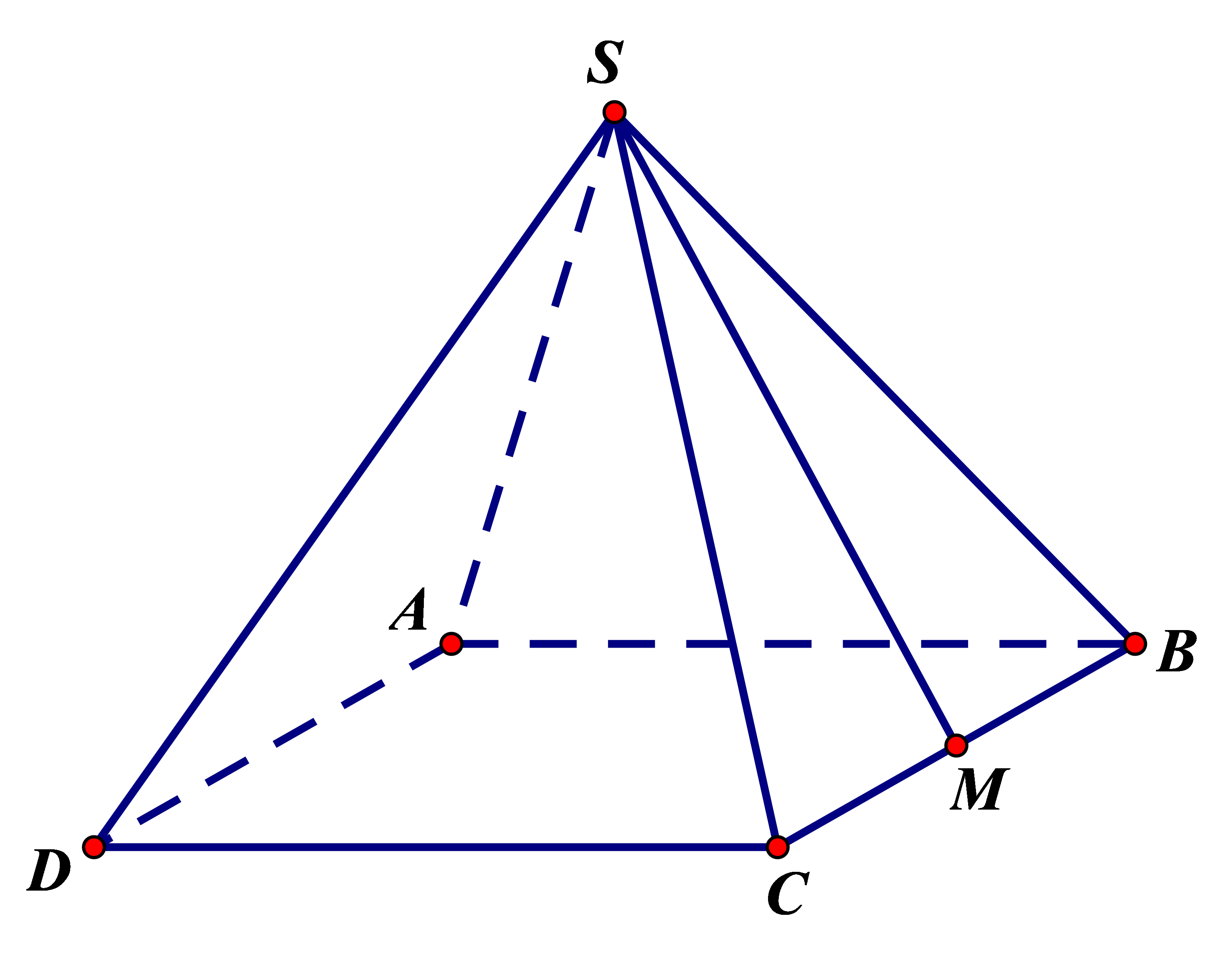 Như vậy, `SM` là trung đoạn của hình chóp tứ giác đều `S.ABCD`