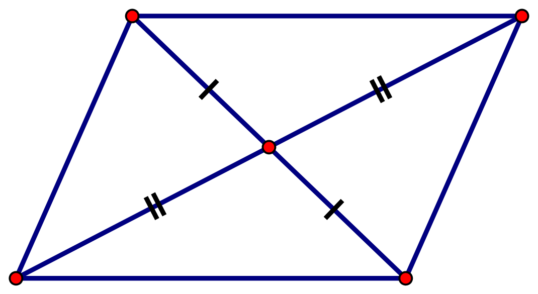 `AC` và `BD` cắt nhau tại trung điểm của mỗi đường