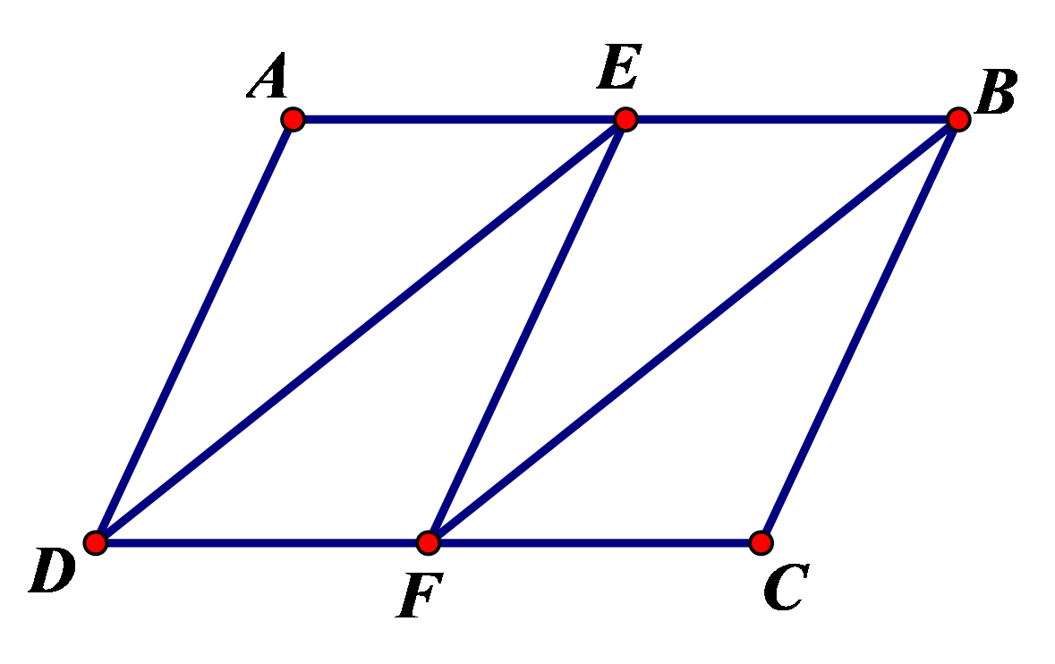 Cho hình bình hành `ABCD`. Gọi `E` là trung điểm `AB,F` là trung điểm của `CD.` Nối các đoạn thẳng ở hai cột để tạo thành một cặp đoạn thẳng bằng nhau