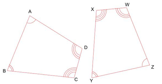 Biết tứ giác `ABCD` và `WXYZ` là hai hình đồng dạng với nhau. Góc nào trong tứ giác `WXYZ` tương ứng với góc `hat(BCD)` trong tứ giác `ABCD` ?