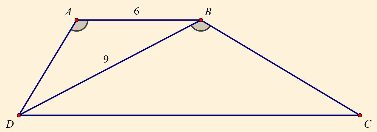 Cho hình thang `ABCD(AB////CD)` có `hat(DAB)=hat(DBC);AB=6cm;BD=9cm.`
