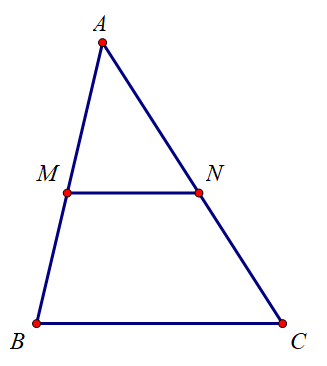 Vì `MN////BC` nên theo định lí Thalès ta có `(AM)/(AB)=(AN)/(AC)`;