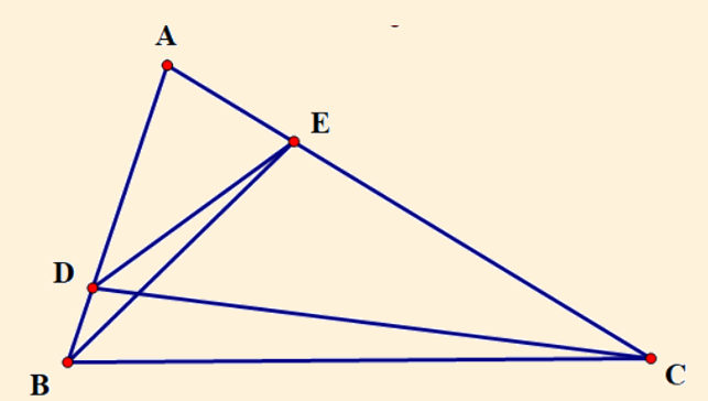 Cho `△ABC` có `AB=8cm;AC=16cm.` Gọi `D` và `E` là hai điểm lần lượt trên `AB;AC` sao cho `BD=2cm;CE=13cm.`