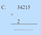 Cho phép tính: `34` `215 xx 2` . Trong các cách sau, cách đặt tính nào đúng?