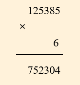 Vậy: `125` `384 xx 6 = 752` `304`.