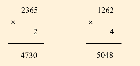 Nên ta có `2365 xx 2``<``1262 xx 4`