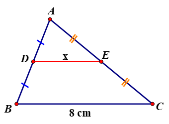 `=> DE = 1/2 BC = 1/2 . 8 = 4 (cm)`