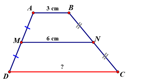 Thay số: `6=(3+CD)/2 => 3+CD =12 => CD=9(cm)`
