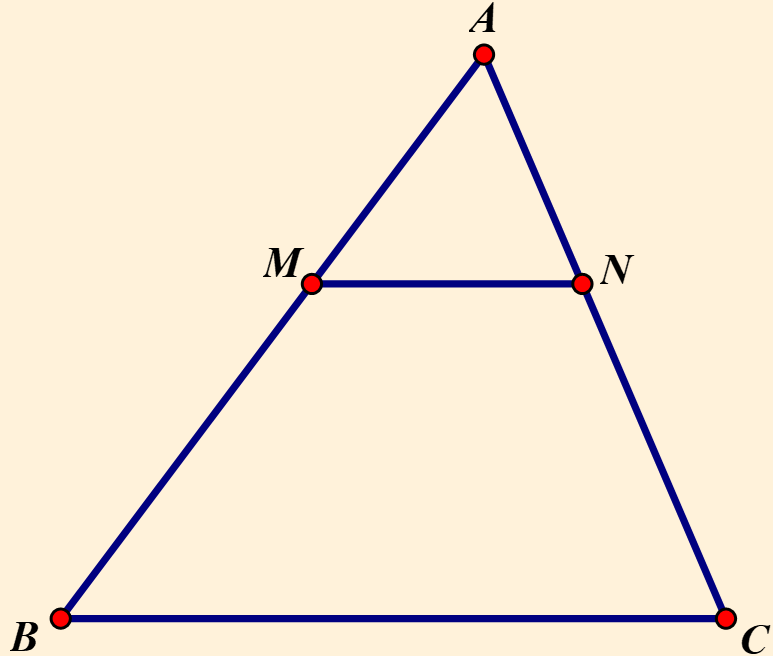 Cho tam giác `ABC` có `MN////BC` `(M in AB; N in AC)`