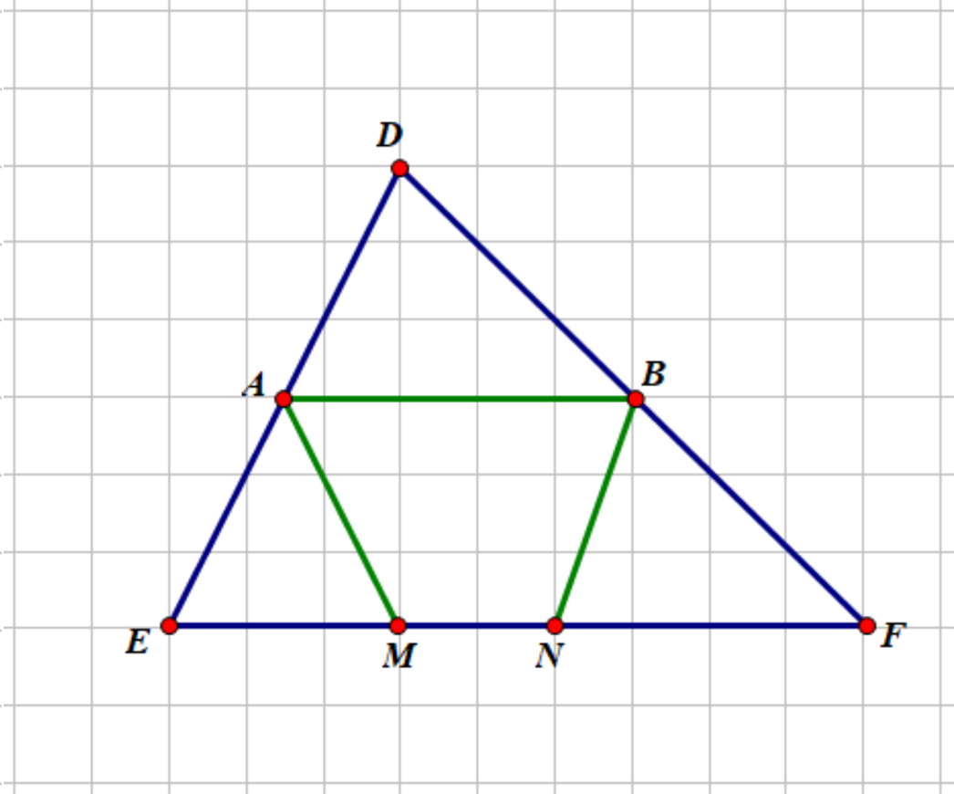 Cho biết đâu là đường trung bình của tam giác `DEF` ?