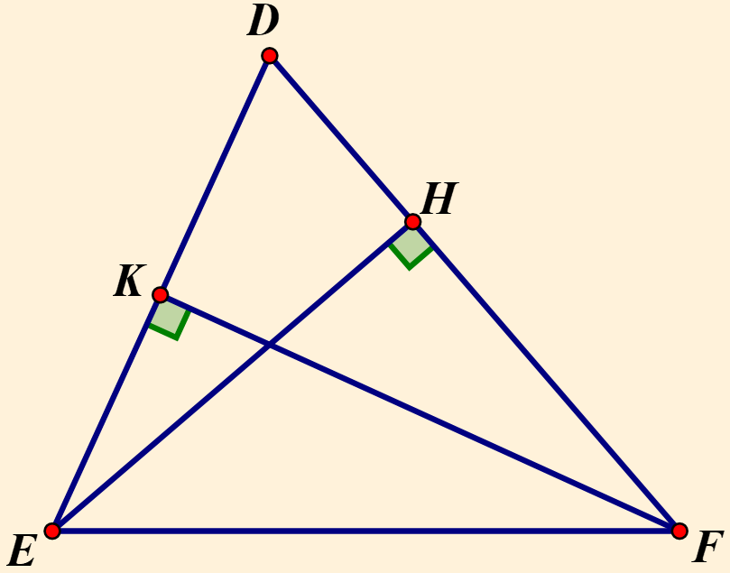 Cho `△DEF` có hai đường cao`EH` và `FK`. So sánh