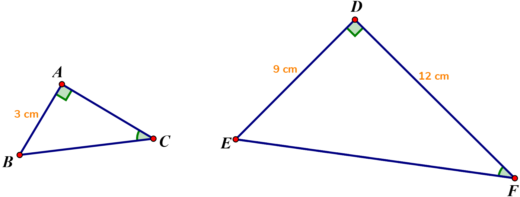 Bước 2: Chứng minh `△ABCᔕ△DEF` từ đó suy ra các cạnh tương ứng tỉ lệ