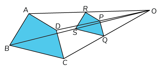 Cho tứ giác `ABCD` và tứ giác `RSQT` là hai hình đồng dạng phối cảnh như hình vẽ.