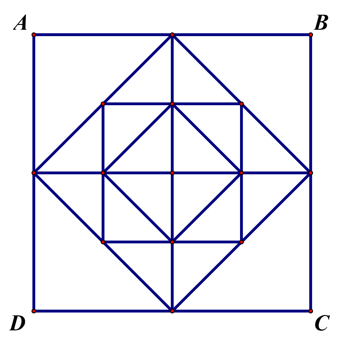 Các hình vuông nằm trong `ABCD` là