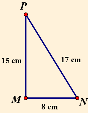 Cho tam giác `MNP` có `MN = 8 (cm); NP = 17 (cm); MP = 15 (cm)`