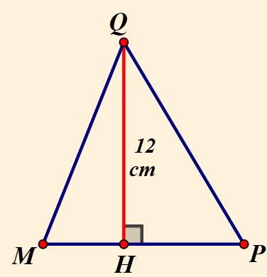 Cho tam giác `MPQ`, biết diện tích tam giác là `72 cm^2` và độ dài đường cao `QH` bằng `12 cm`.